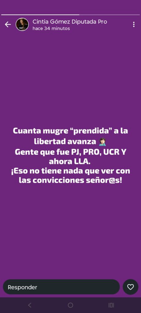 (la unión mendocina) Cintia Gómez, quien su red social de WhatsApp dejo ver su enojo,