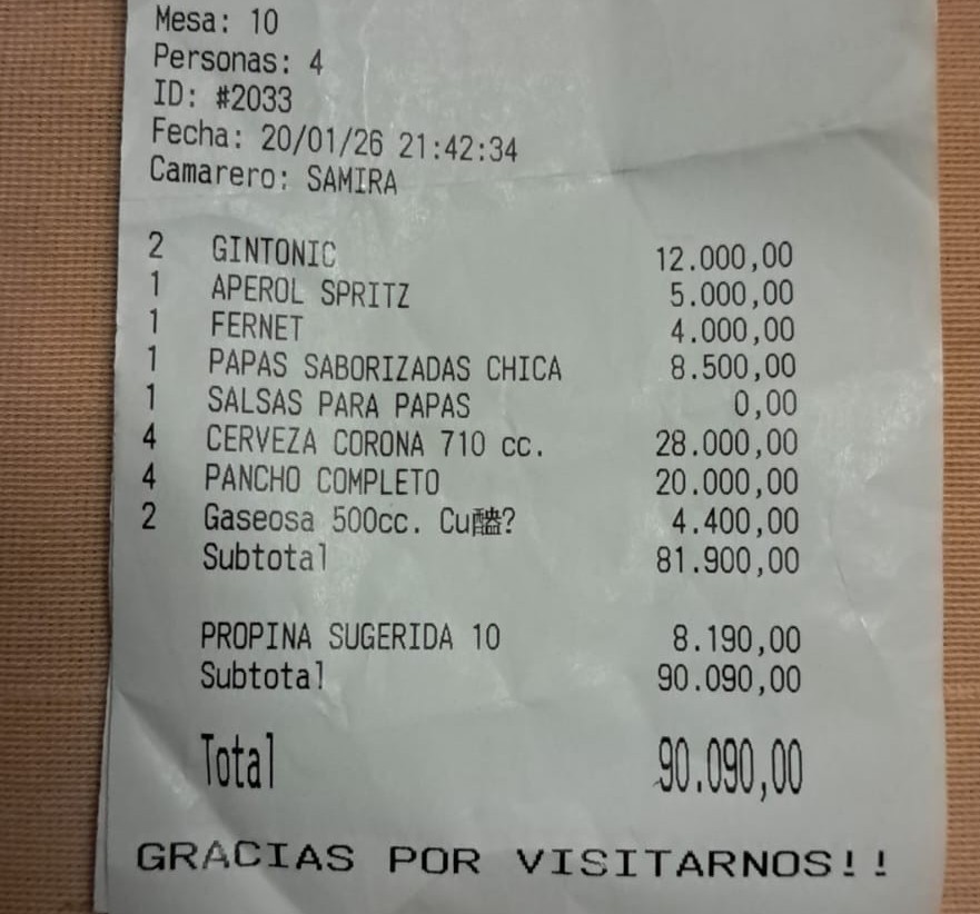 Cuatro empleados del Instituto Provincial de la Vivienda (IPV) tomándose un recreo en Tunuyán. Pararon para comerse un pancho en un conocido comercio del departamento y lo acompañaron con unos buenos tragos de fernet, aperol, Gintonic y para no aflojar cerveza, eso sí de la marca más cara, esa que tiene Corona, más o menos unos 90 mil pesos dice el ticket del gasto